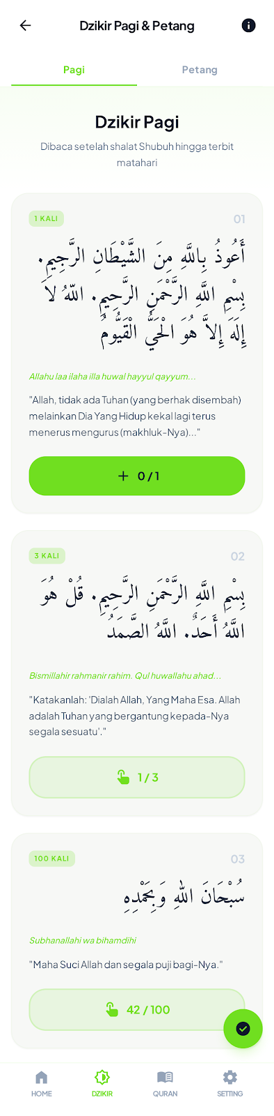 - Murattal: Spotify-style 5-button controls [Shuffle, Prev, Play, Next, Playlist]
